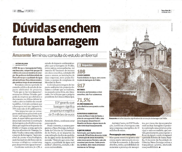 Conforme noticiou já o JN, o estudo de impacto ambiental explica que a barragem de Fridão, entre outras consequências, vai inundar 817 hectares de terreno em cinco concelhos, cobrindo 108 casas e anexos, as instalações de duas empresas, nove praias fluviais e o parque de campismo de Mondim de Basto.