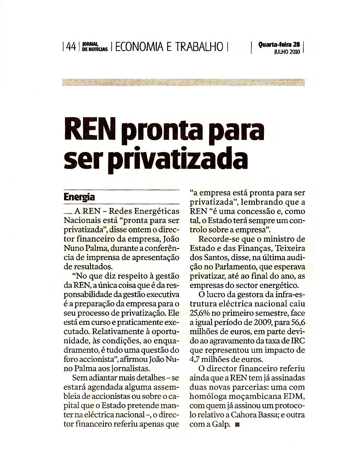 in Jornal de Notícias, N.º 57, ANO 123 (p. 44) - 28 de Julho de 2010