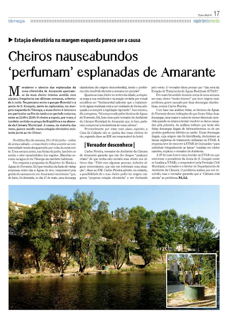 Cheiros nauseabundos 'perfumam' esplanadas de Amarante