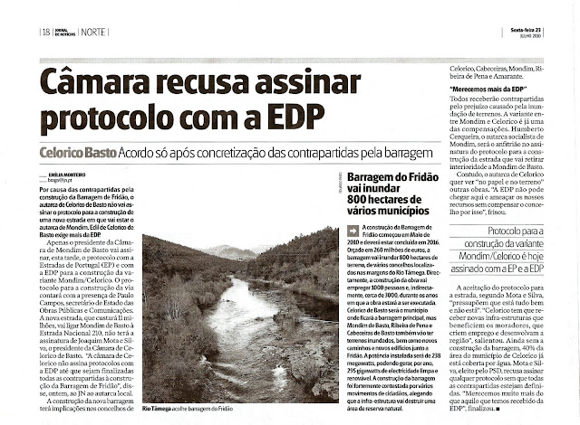 O Ministério do Ambiente emitiu dia 30 de Abril a declaração de impacte ambiental condicionada à cota mais baixa da barragem do Fridão.